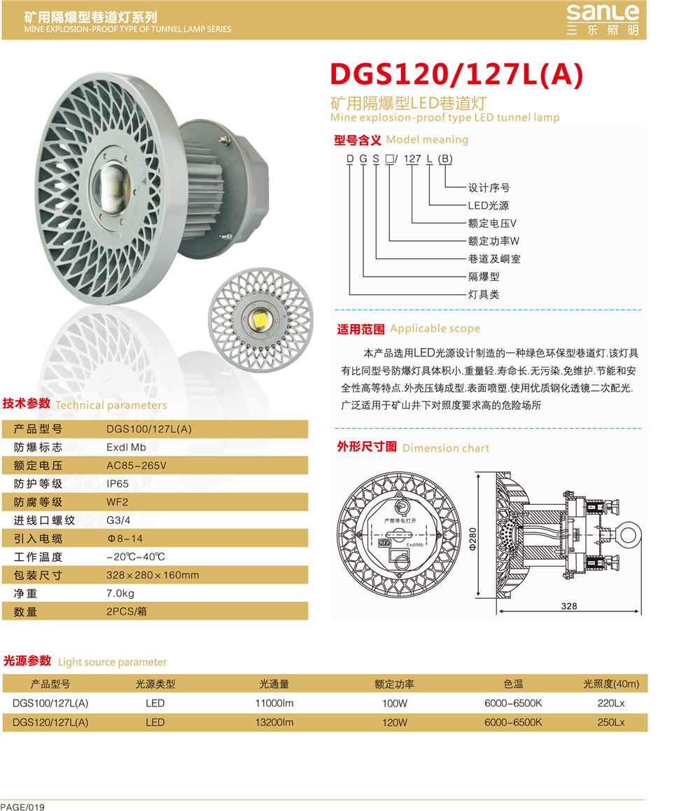DGC19/127L(A)礦用隔爆型支架燈