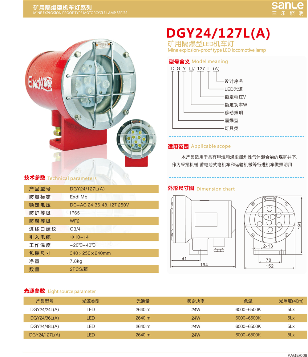 DGY9/24L(A) 礦用隔爆型架線機(jī)車燈