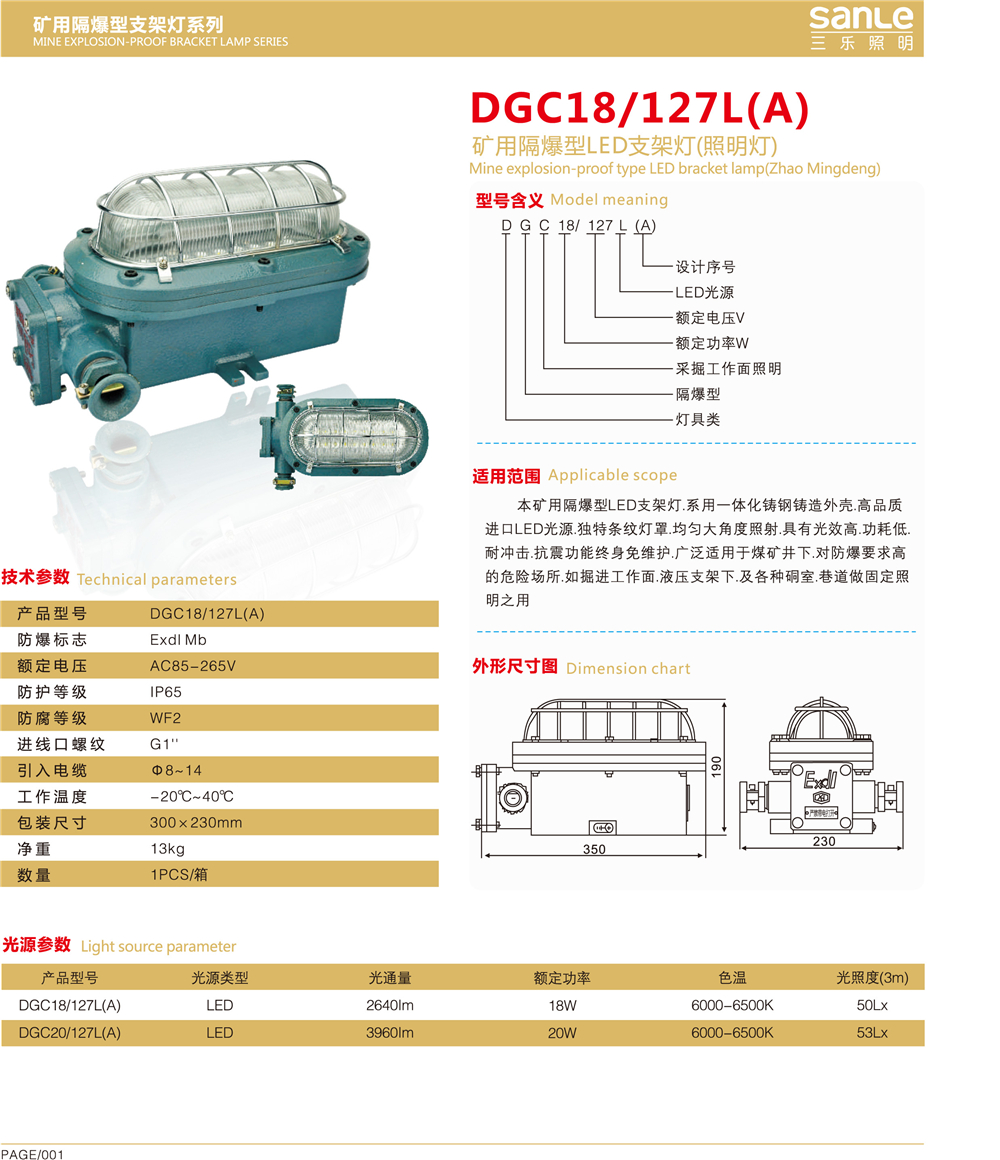 DGC18/127L(A)礦用隔爆型LED照明燈(支架燈)