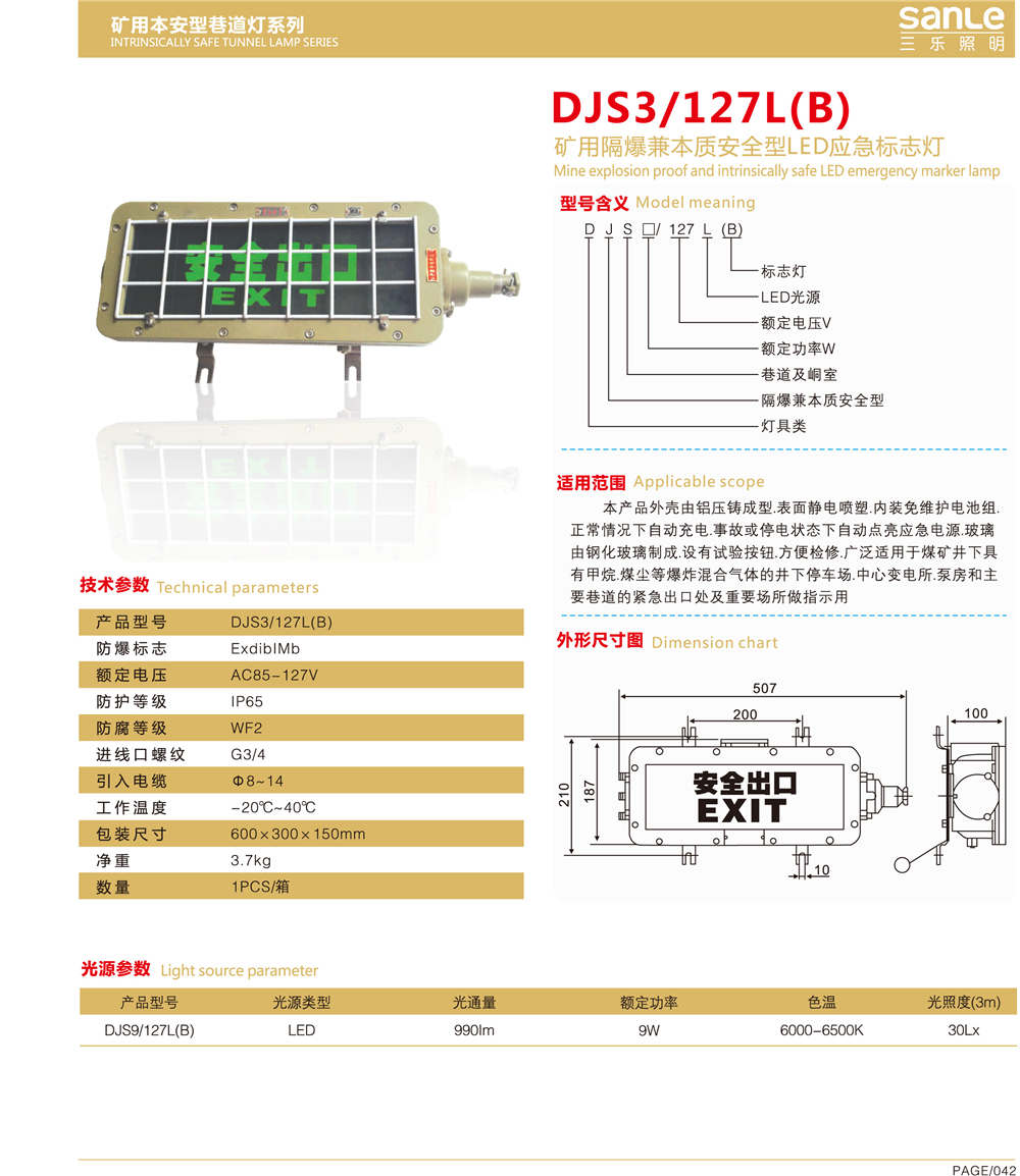 DJS3/127L(B)礦用隔爆兼本質(zhì)安全型LED應(yīng)急標(biāo)志燈