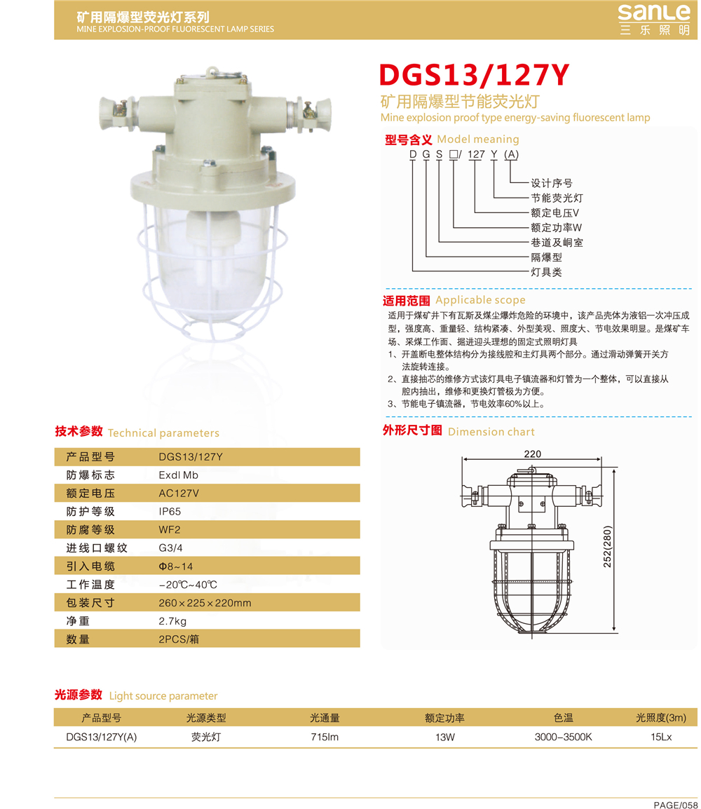 DGS18/127Y礦用隔爆型節(jié)能熒光燈
